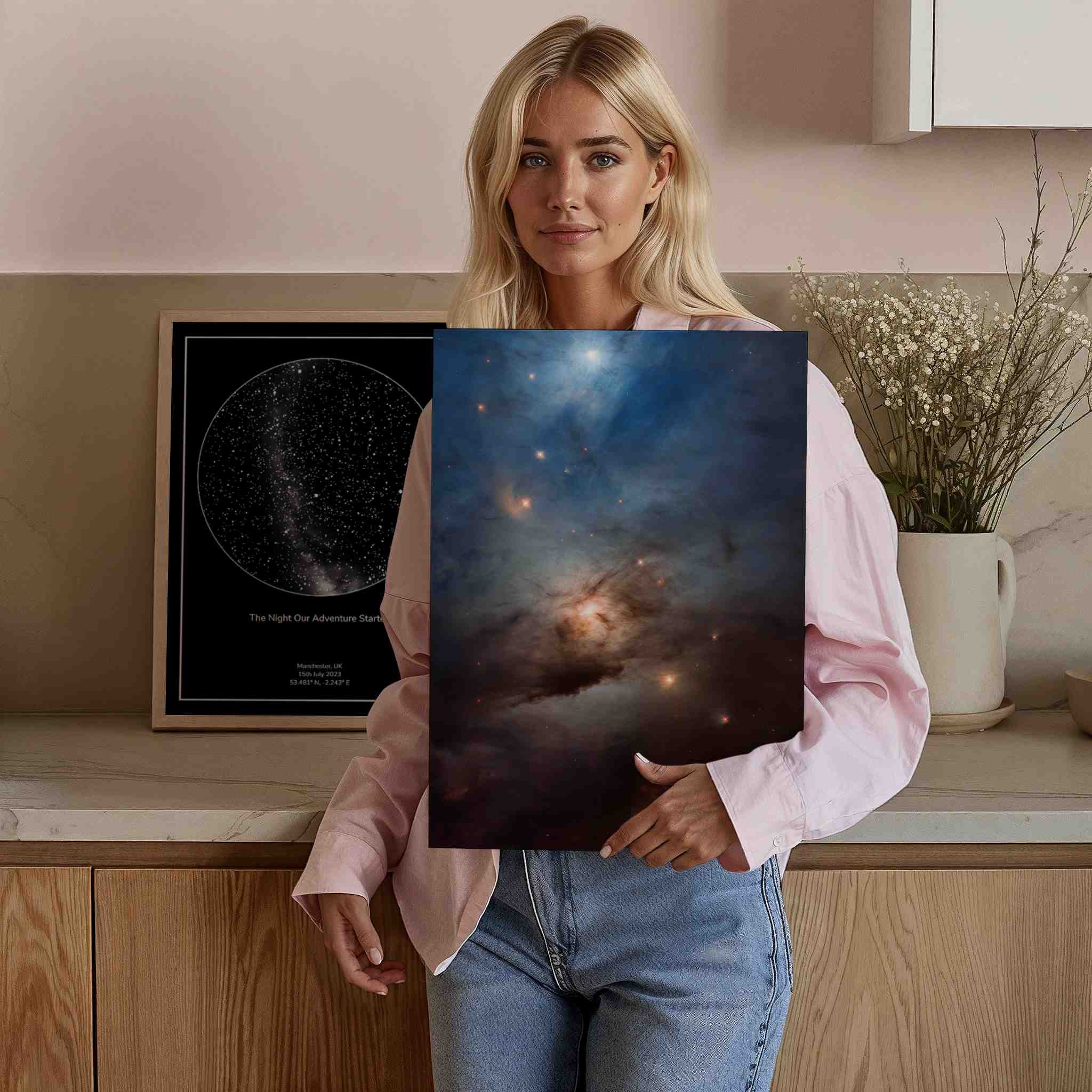 To get the best space pictures, you should select them from stores such as Picture the Stars. Our posters are printed in high definition on quality paper, and you can personalise them as gifts. So, add a love note and choose the perfect theme and frame to wow your girlfriend.