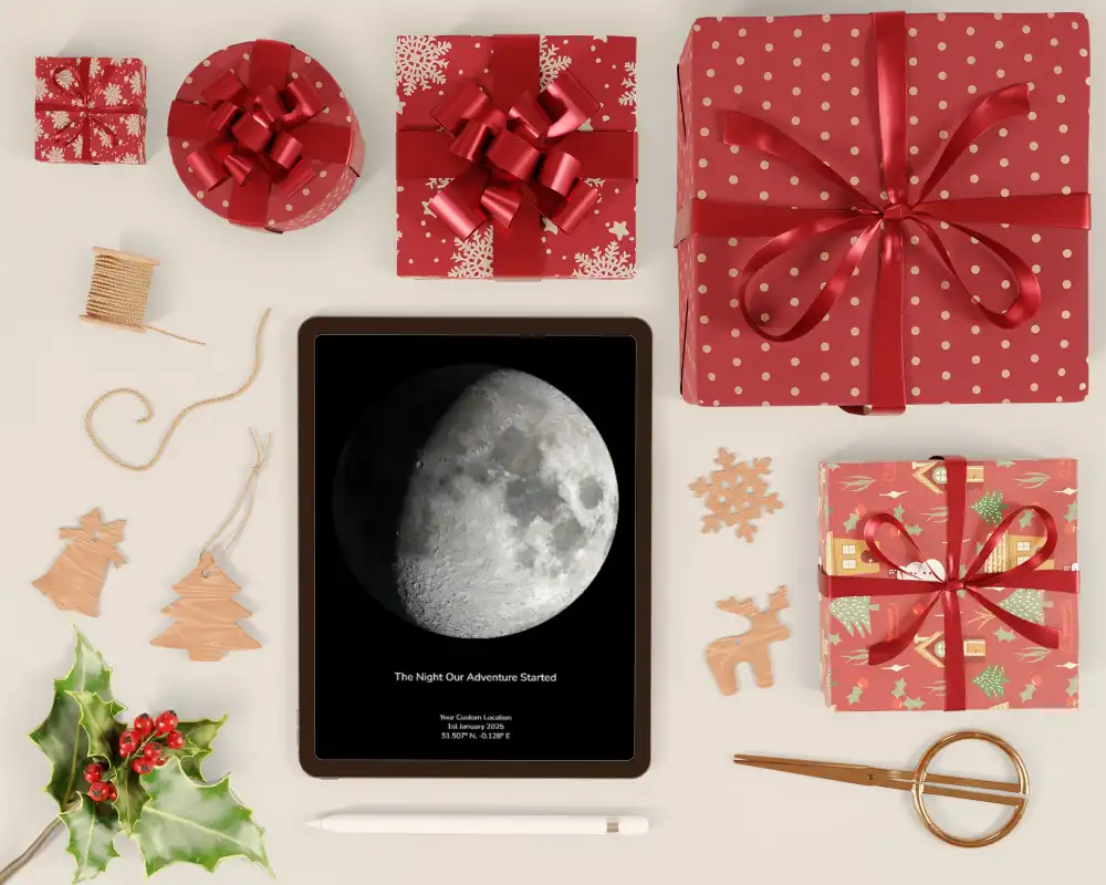 When selecting this gift, you can add a personal note, choose a date, and pick a location. These details will allow you to create a stunning depiction of the night sky as it appeared on that significant day.